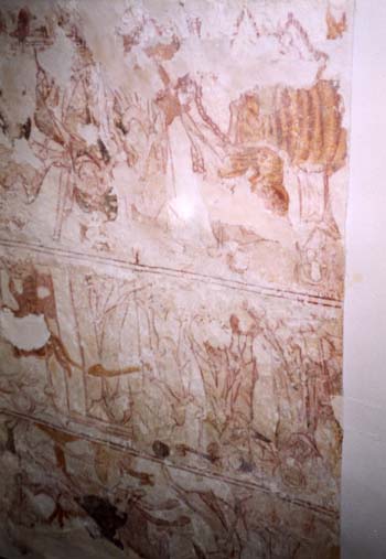 the medieval wall paintings (right) which had been white washed