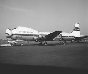 Auster Autocrat G-AIBO at Bahrain. Right: Converted from a DC-4