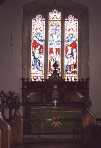 The stain glass window behind the altar (left) commemorates the