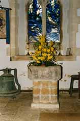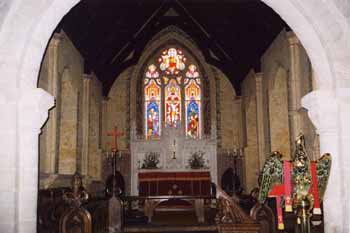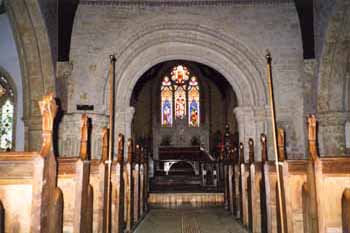View down the aisle and chancel. The semi-circular arch is mid-12th